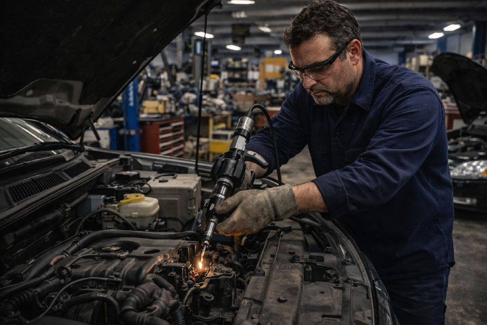 Few automotive repair challenges are as frustrating — or as costly — as a seized or cross-threaded spark plug in an aluminum cylinder head. Applying excessive force risks snapping the plug, stripping the threads, or cracking the head entirely. Klein Industrial Services has the technology and expertise to extract seized spark plugs cleanly, quickly, and without removing the cylinder head from the vehicle.